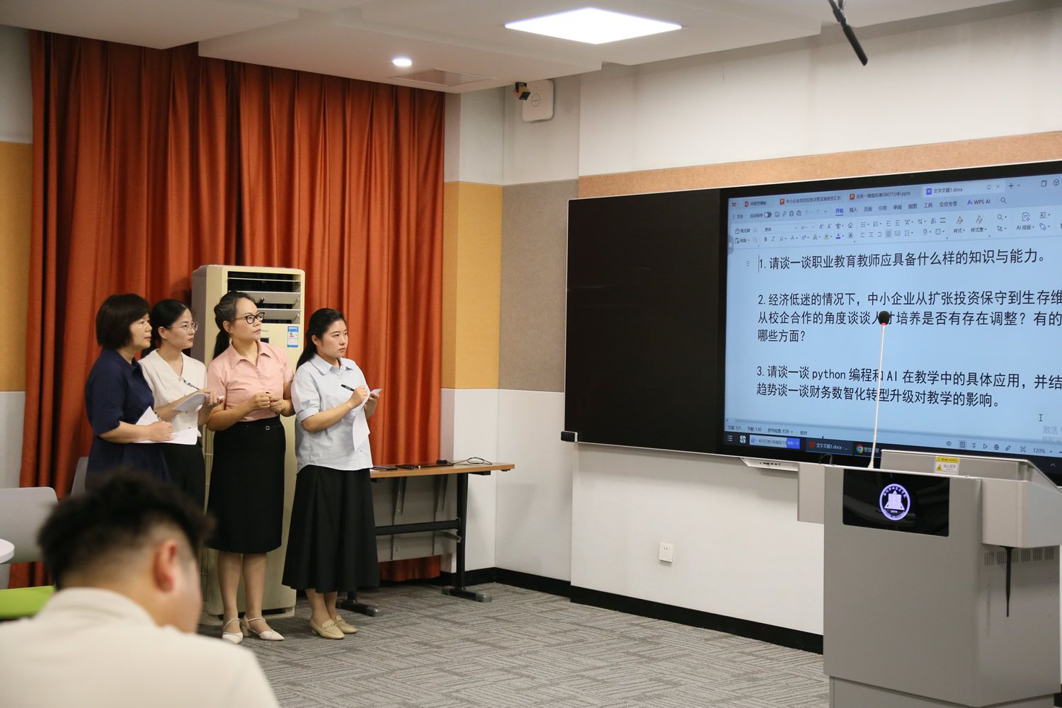 为深化教育教学改革,持续推进学校高水平、结构化教师教学团队建设,坚持“以赛促教、以赛促研,以赛促建、以赛促改”,学校于7月3日在致真楼1201教室成功举办2025年校级教师教学能力大赛决赛。本次决赛由经过初赛最终产生的10支省赛队伍进行,共40名教师参加。校党委委员、副校长苏有良,各教学院部院长(主任)出席观赛。比赛由教务处副处长赵卫东主持。