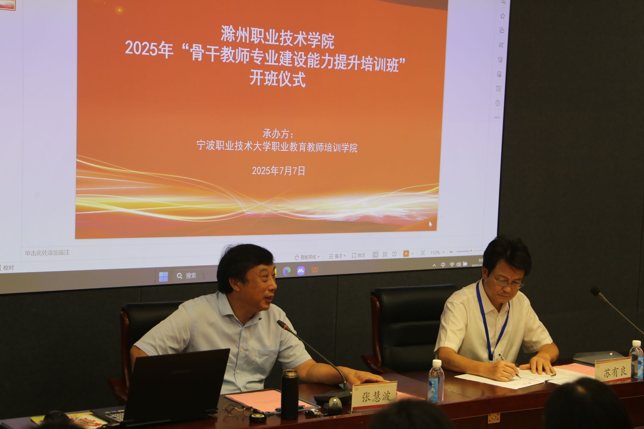 开班仪式上,张慧波代表宁波职业技术学院致欢迎词,要求宁波职业技术学院教师培训学院做好培训服务工作,并对参训学员提出了认真学习服务职业教育发展的期望和要求。随后,张慧波为培训班作了《以教育家精神为引领 做好职业教育守望者》的专题报告。
