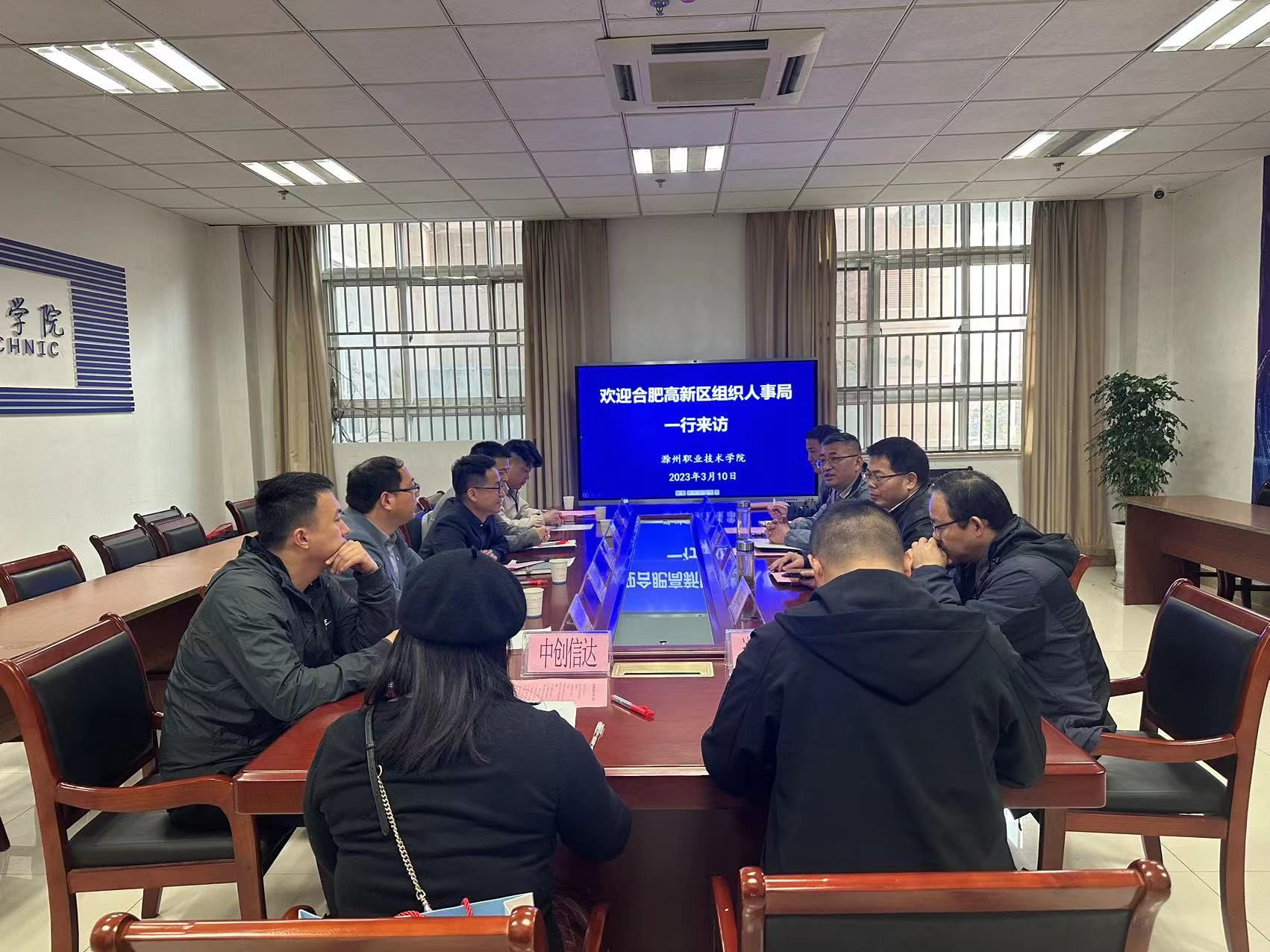 3月10日上午,合肥高新区组织人事局副局长姚笛携合肥高新区就业创业一站式服务中心和部分企业代表来awc官网考察交流。校长助理、招生就业处处长、安徽滁州职教集团秘书长穆松以及招生就业处和传媒学院有关负责同志热情接待。