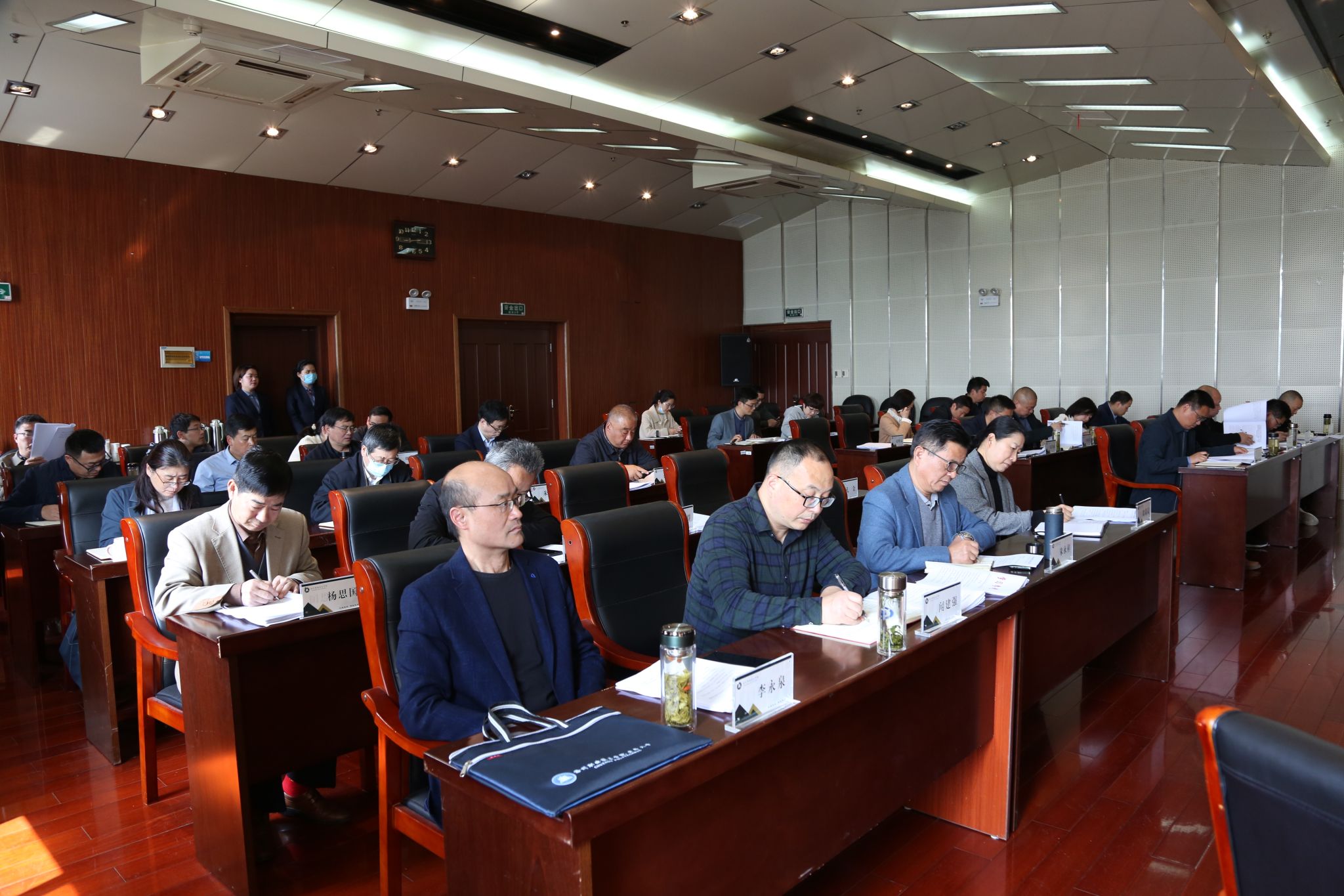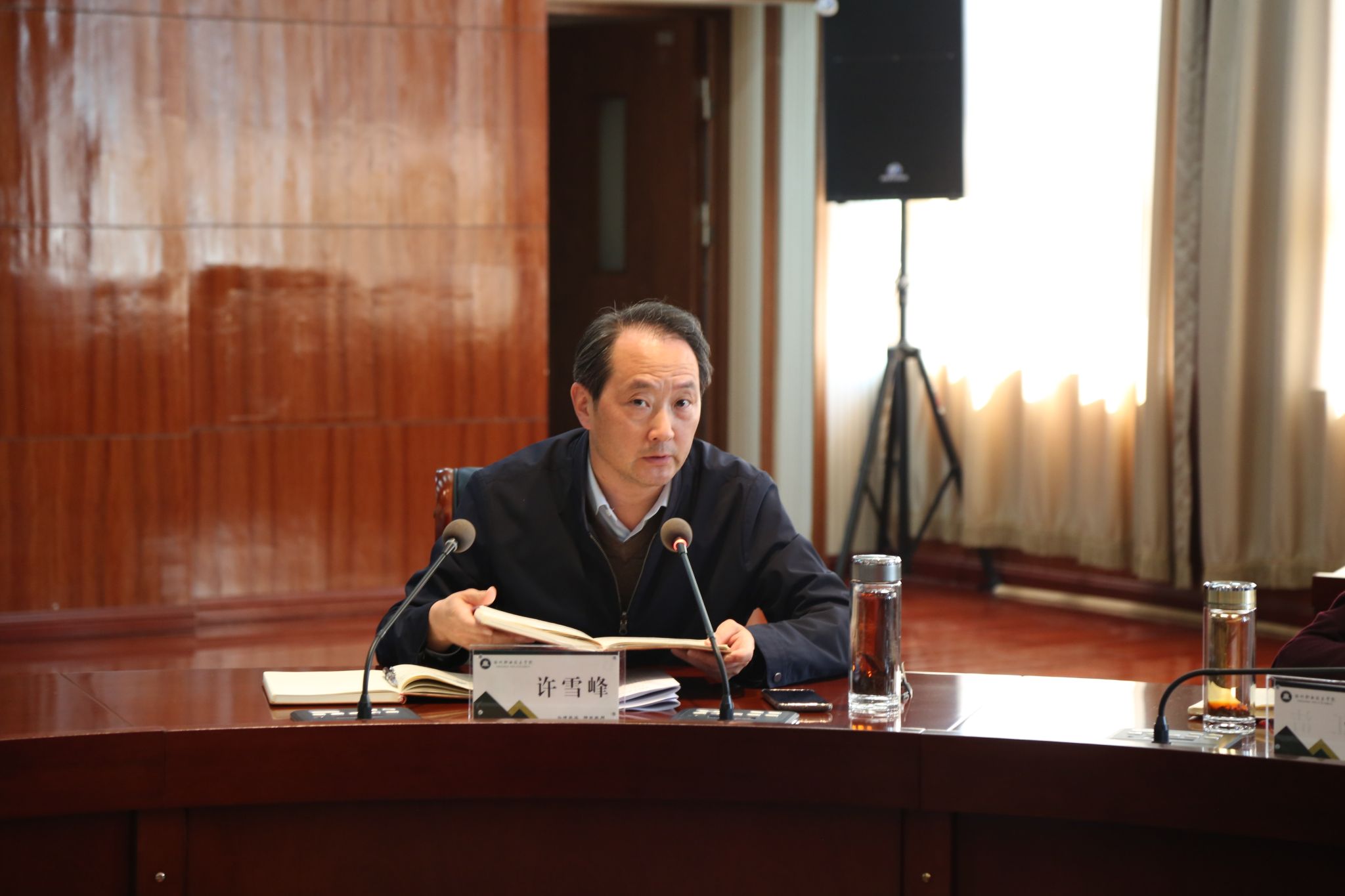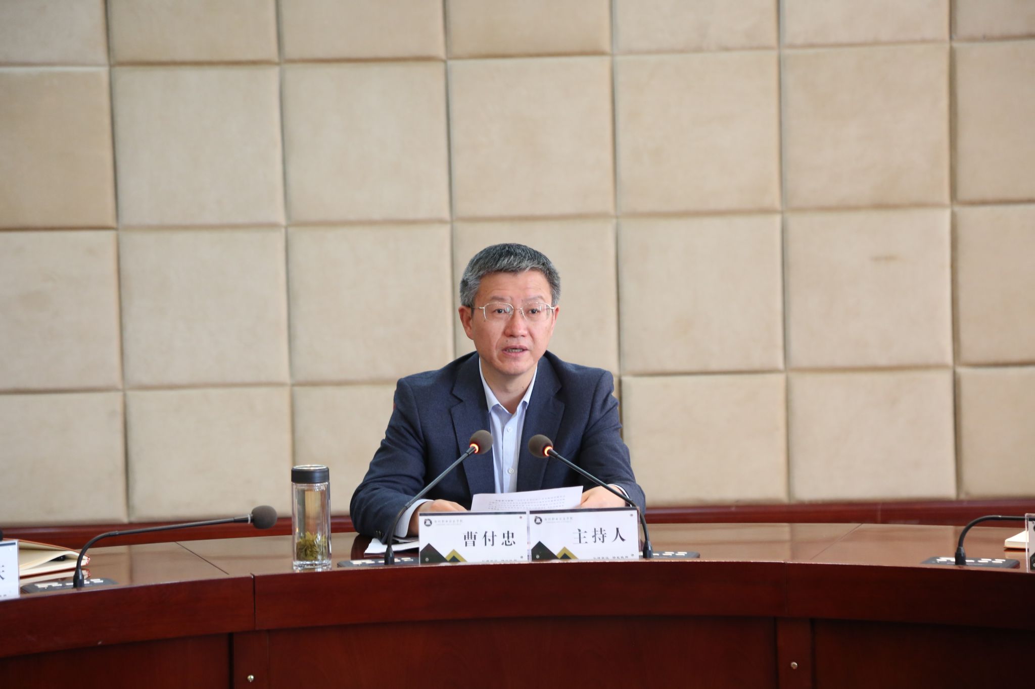 4月26日下午,学校在综合楼1102会议室召开党委理论学习中心组(扩大)学习会议,校党委书记曹付忠主持会议并讲话。校党委副书记、校长许雪峰、校党委副书记杨家庆、校领导江洁、苏有良、李平权、李超、王冬、胡凼,各教学院部、各部门主要负责同志和列席中心组学习会议的有关负责同志出席会议。
