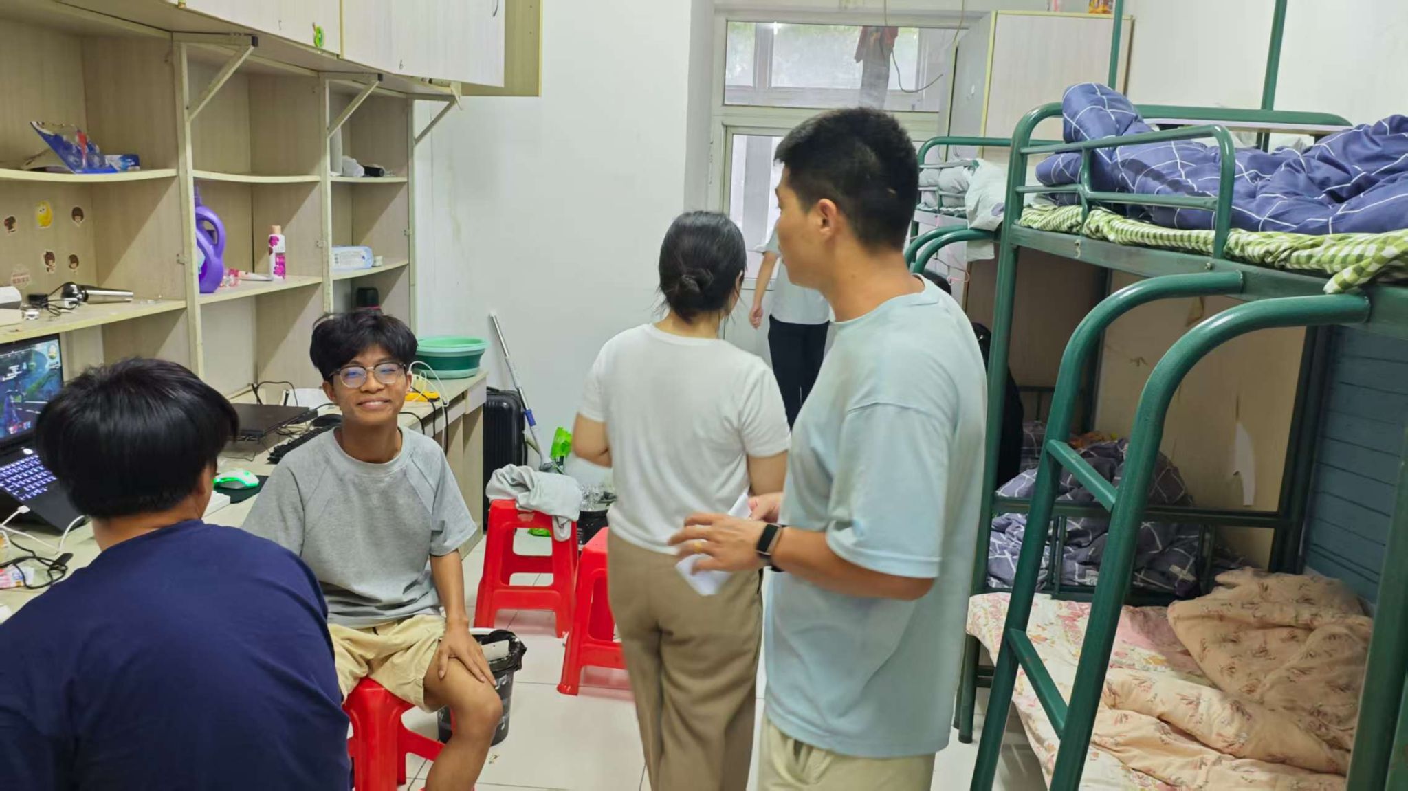检查过程中,辅导员团队以“安全第一、关怀至上”为原则,重点围绕宿舍用电安全、消防安全及生活设施情况展开排查。每到一间宿舍,辅导员们都仔细检查插线板是否符合标准、是否存在违规电器,逐一查看门窗、空调、热水系统等设施的运行状态,确保新生居住环境安全无忧。