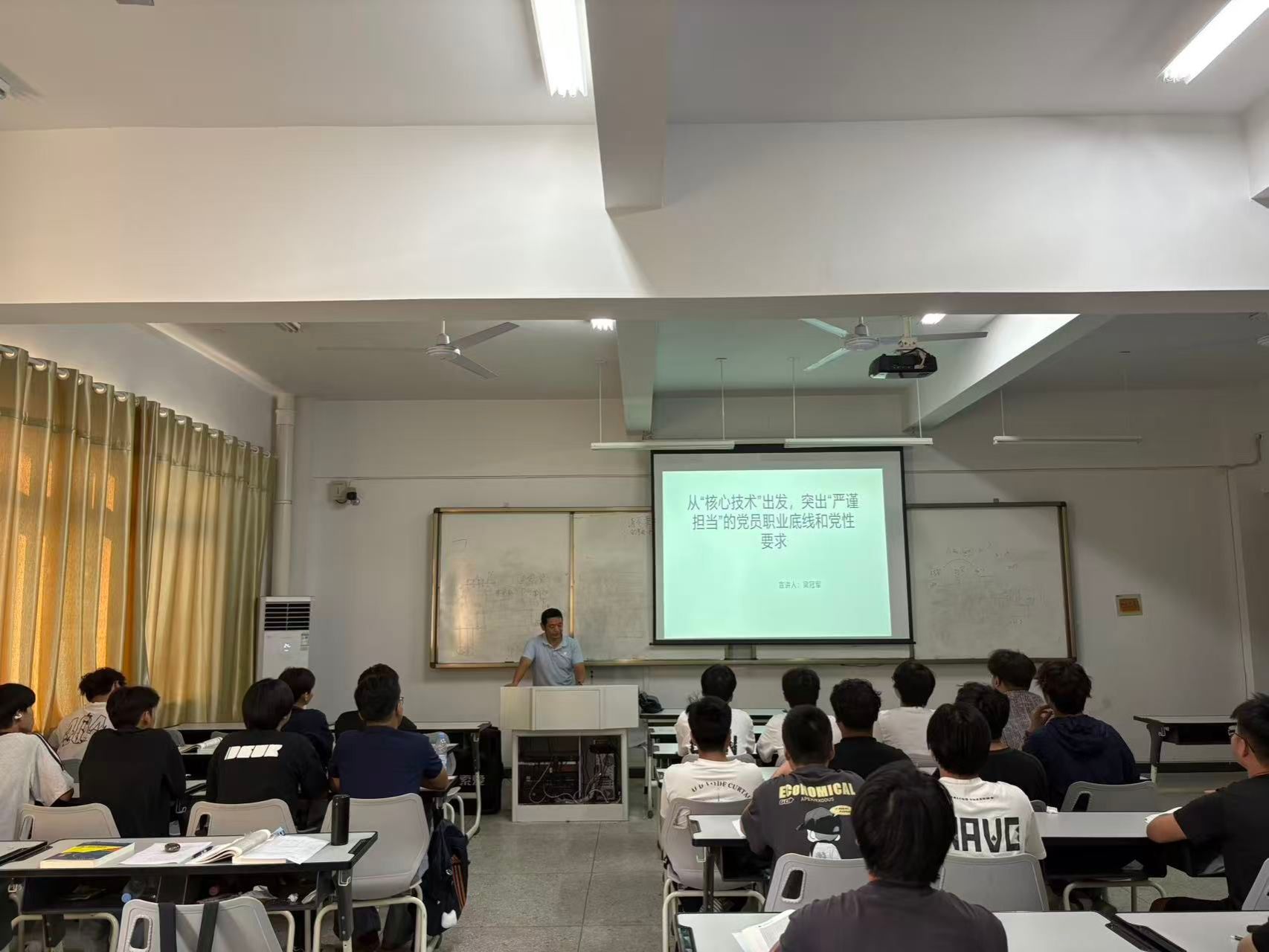 本次党课以“从‘核心技术’发力,突出‘严谨担当’作为党员工程师的职业底线与党性要求”为核心。梁冠军副教授以多个因微小技术偏差导致的重大工程事故案例开场,深刻揭示了在钢筋铁骨的丛林中,“差不多”就是“差很多”,“毫厘之失”可致“千里之溃”。