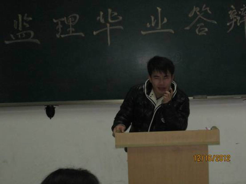 经过5周的毕业设计,12月16日土木工程系10级工程监理专业毕业答辩正式开始,答辩分两组分别在4201及4202教室举行,参加此次答辩的老师有第一组朱永祥主任、陈燕老师和李延老师;第二组胡孝华老师、冯环老师和张勇老师。