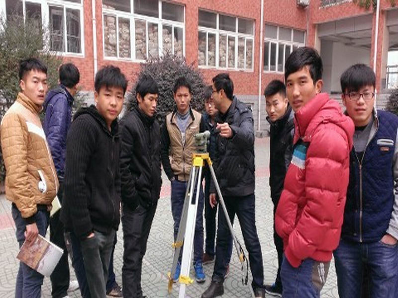 由土木工程系朱宝老师首先在课堂给大家讲授测量坐标系的知识和水准测量的原理。接下来,朱老师带大家到室外进行仪器操作演示和讲解。