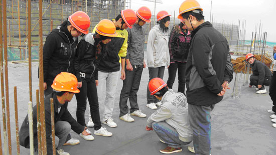 一年一度的校外实习在11月拉开了序幕。08级造价专业的学生于11月23日开始了为期两周的校外实习,所有学生都深入一线施工现场进行参观学习,并在技术人员的指导下亲自动手操作,理论结合实际。 11月下旬天寒地冻,但造价学子的热情是炙热的。大多数同学都步行到工地,吃苦耐劳,部分学生在实习开始两天就受到现场技术人员的好评。就像学生们所说“走实习之路,创造价之风”,用“执着、责任、团结”来谱写最美的曲子,编制最美的造价学子之梦,放飞梦想的翅膀,迎接明日的辉煌!