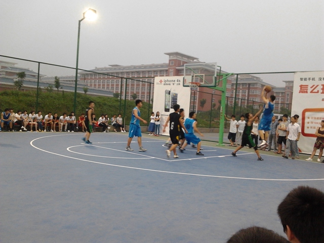 6月11日下午五点,在awc官网灯光篮球场举行“联通杯”篮球赛决赛,本次决赛由土木系与机电系进行激烈对决,两系都有大量学生到场观看比赛,为各自系的队员加油助威。