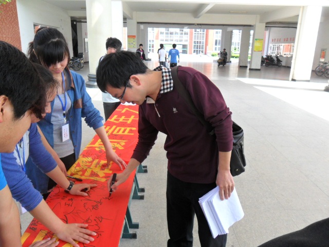 4月23日上午9:30土木系学生会在我院4号楼大厅,组织了一场“感悟阅读之美,磨砺青年之志”的专题签名活动。作为读书月的重点主题活动之一,活动吸引了大量学生参加,从而拉开了我系读书月活动的美好篇章.