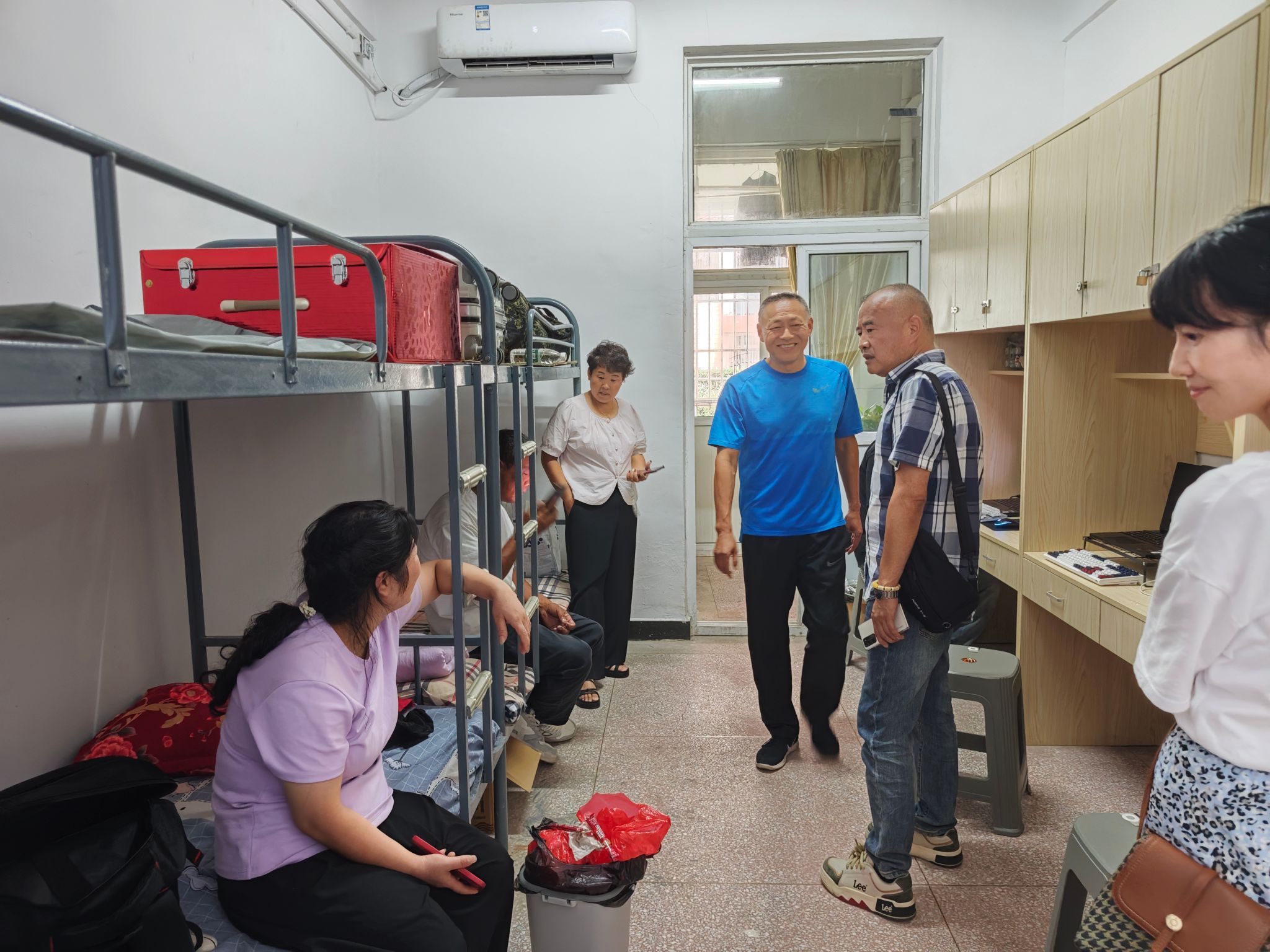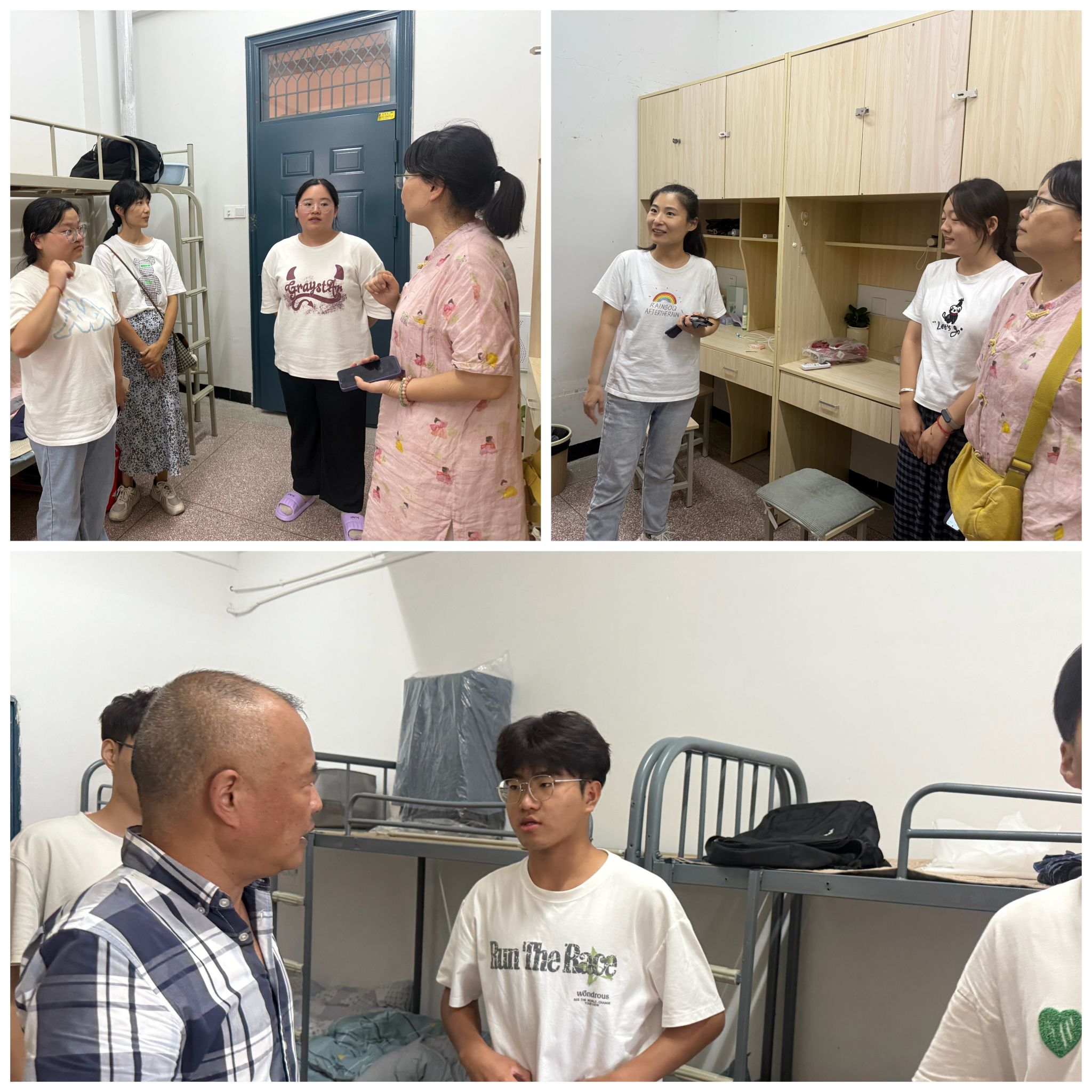走访过程中,学院领导与新生们亲切交流,细致询问大家“从哪里来”“是否适应学校环境”“住宿是否习惯”等问题,耐心聆听同学们的入学感受与困惑。老师们还仔细查看了宿舍的各项设施,了解生活配套情况,叮嘱同学们要注意人身与财产安全,尽快适应新环境,建立和谐的宿舍氛围。