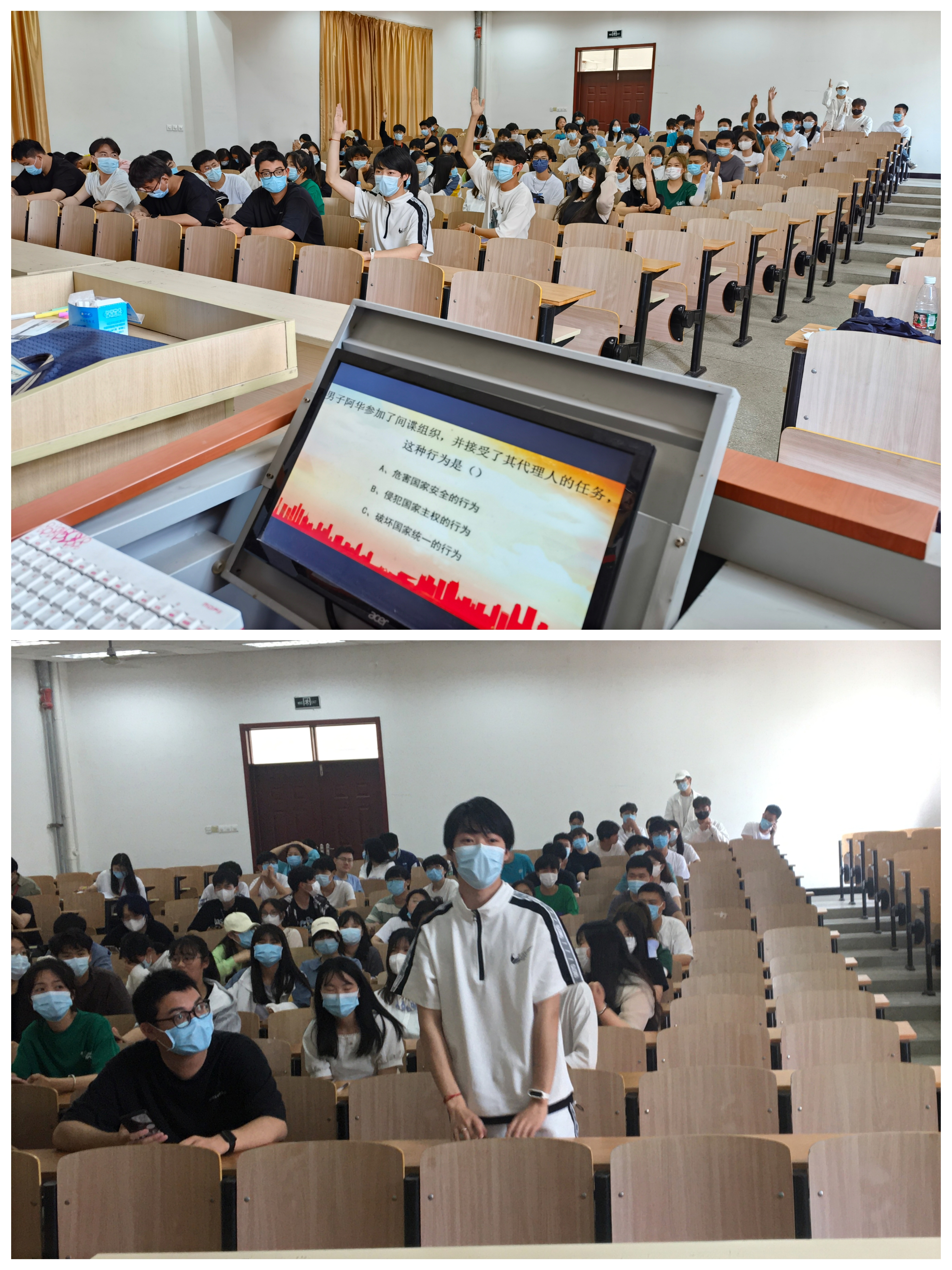 活动前期,各班级组织学生观看了“千万师生同上一堂国家安全教育课”为主题的公开课,让同学们了解到了国家安全法律法规知识,对国家安全有了更深入的了解。4月23日下午,线下竞赛活动正式拉开帷幕,本次活动共分为笔试和抢答两个部分,围绕国家安全知识、安全基础知识等内容展开,通过单选题、多选题和判断题等多种题型,深入考察同学们对国家安全知识的掌握和理解程度,所有参赛同学在遵守疫情防控规定的基础上间隔就坐自主答题。随后的抢答环节同学们更加积极主动,争先恐后的举手抢答问题。