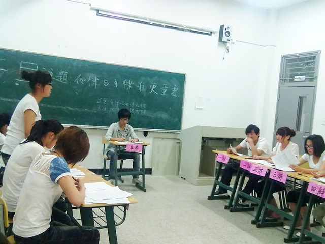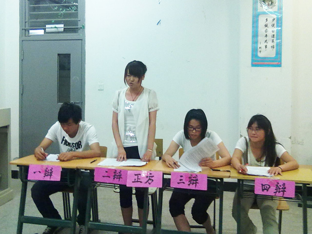 2011年5月16日在学生会的组织下,我系10图形和10电子(1)班于2504教室举行了一场别开生面的辩论赛。辩论的主题是“大学生他律与自律谁更重要”。评委由学生会的各个部长担任。正反两方唇枪舌剑,你争我辩,赢得掌声连连。