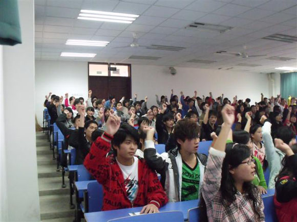 图为我系志愿者认真学习表演动作