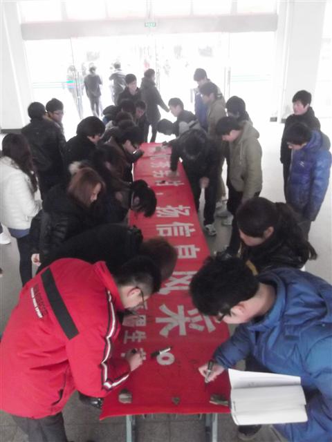 下图为我系男辅导员和男教师也积极参加签名活动中