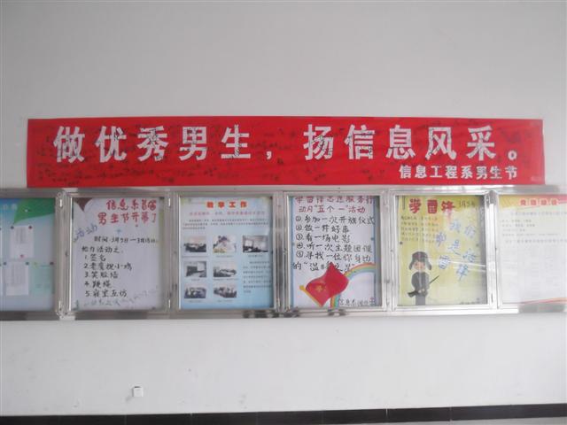 为迎接我院一年一度的女生节,同时增进系部男女生友谊,促进系部和谐,信息系学生会经过精心策划,在全院首次推出“男生节”活动,得到了我系师生的大力支持。据悉,信息系首届男生节包含五个系列活动,“做优秀男生,扬信息风采”签名活动一经推出,成功吸引了学生特别是男生的眼球。男生们开心地说,这下我们也有节日可过了。