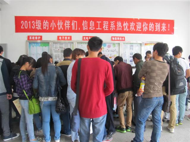 伴着秋风送爽,菊花飘香,2013级小伙伴们来啦!9月7日,信息工程系新生接待处一大早就忙得热火朝天。师生迎新工作小组共同奋战在迎新第一线,为新生和家长提供热情周到的接待服务。