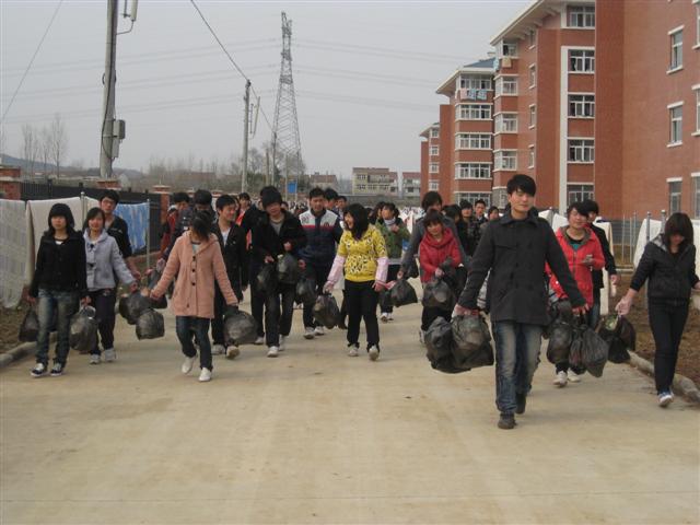 2011年3月23日下午两点半,在信息系党总支的安排部署下,我系团总支带领10级15、16期党校80余名学员进行了义务清扫校园活动。团总支书记杨阳老师带领全体同学对9号楼、10号楼周围进行了勘察,然后将同学们分成小组“围剿”垃圾。