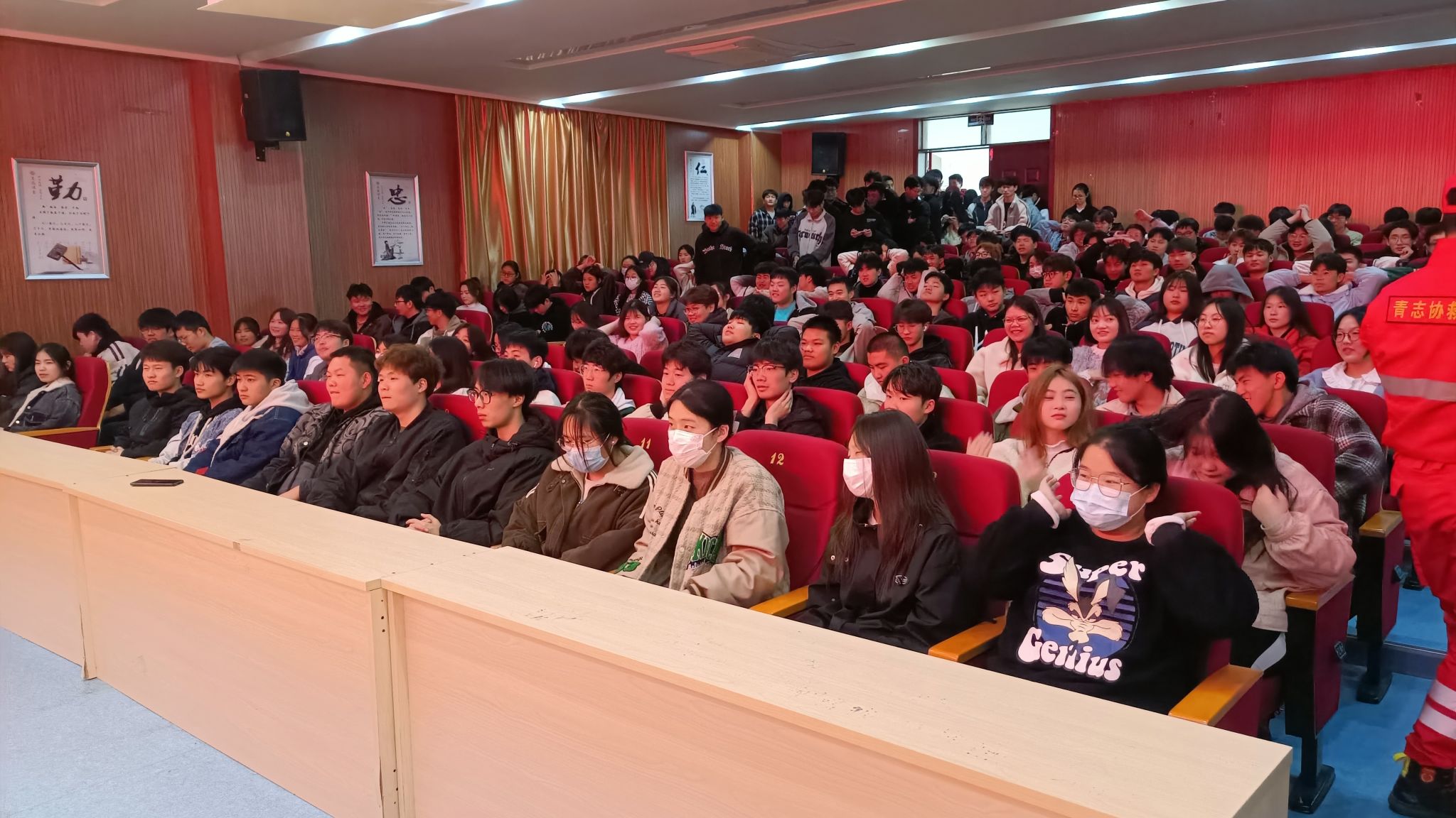 为弘扬雷锋精神,增强我院学生应急救援能力,提升我院学生的志愿服务技能。3月22日下午,信息工程学院团总支雷锋月系列活动之“弘扬雷锋志愿者精神,增强应急救援能力”应急知识专题讲座在南阶203顺利举行。本次活动由来安县青年志愿者协会会长吴亚君主讲,滁州市青年志愿者协会的志愿者、院党总支书记杨阳老师、院团总支书记朱睿老师及我院近300名学生代表参与了讲座。