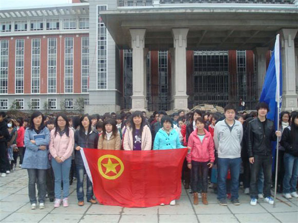 2010年11月15日清晨,我系团总支积极响应团委号召,组织300余名学生代表参加“爱祖国,庆亚运”升旗仪式。