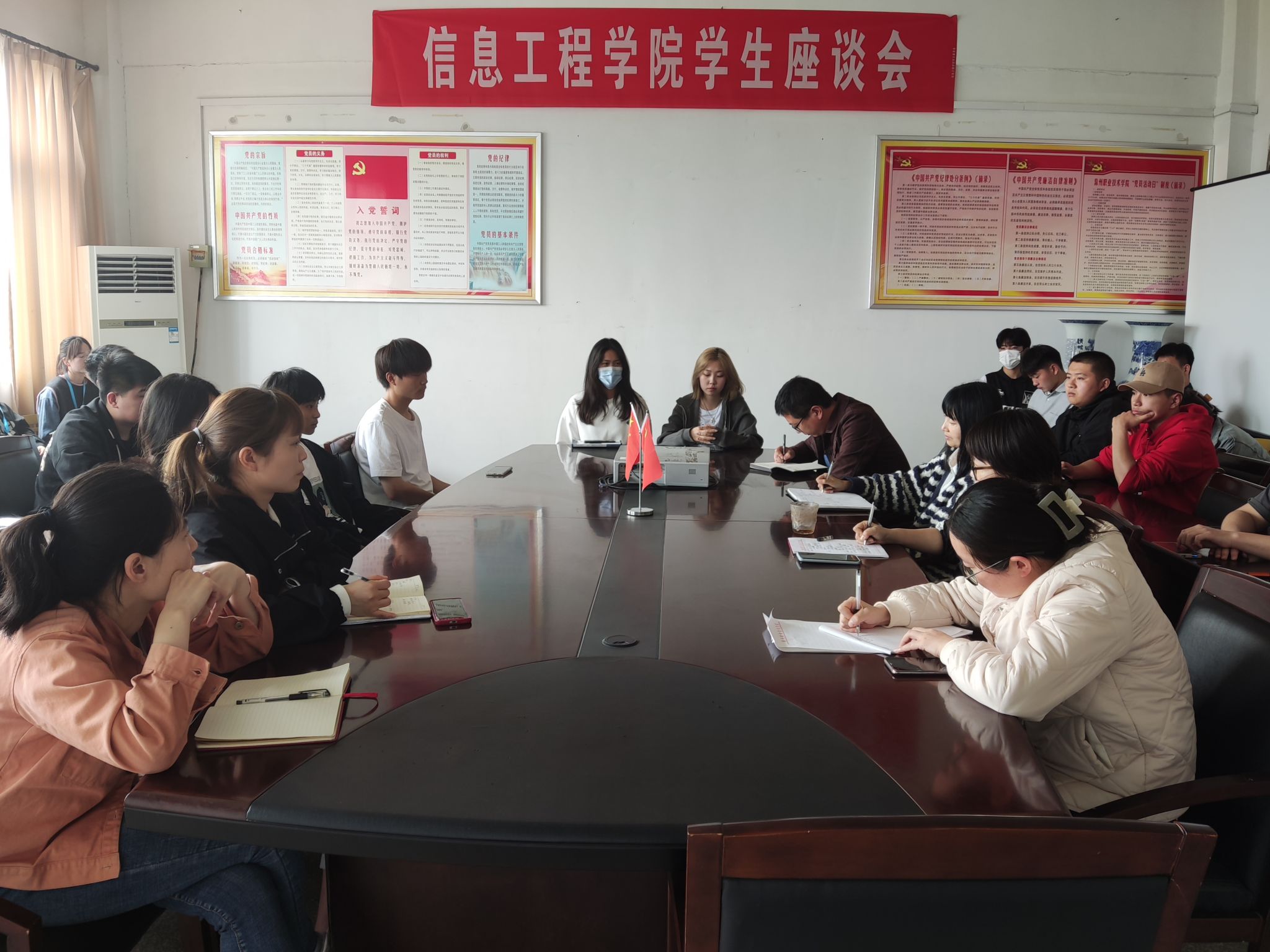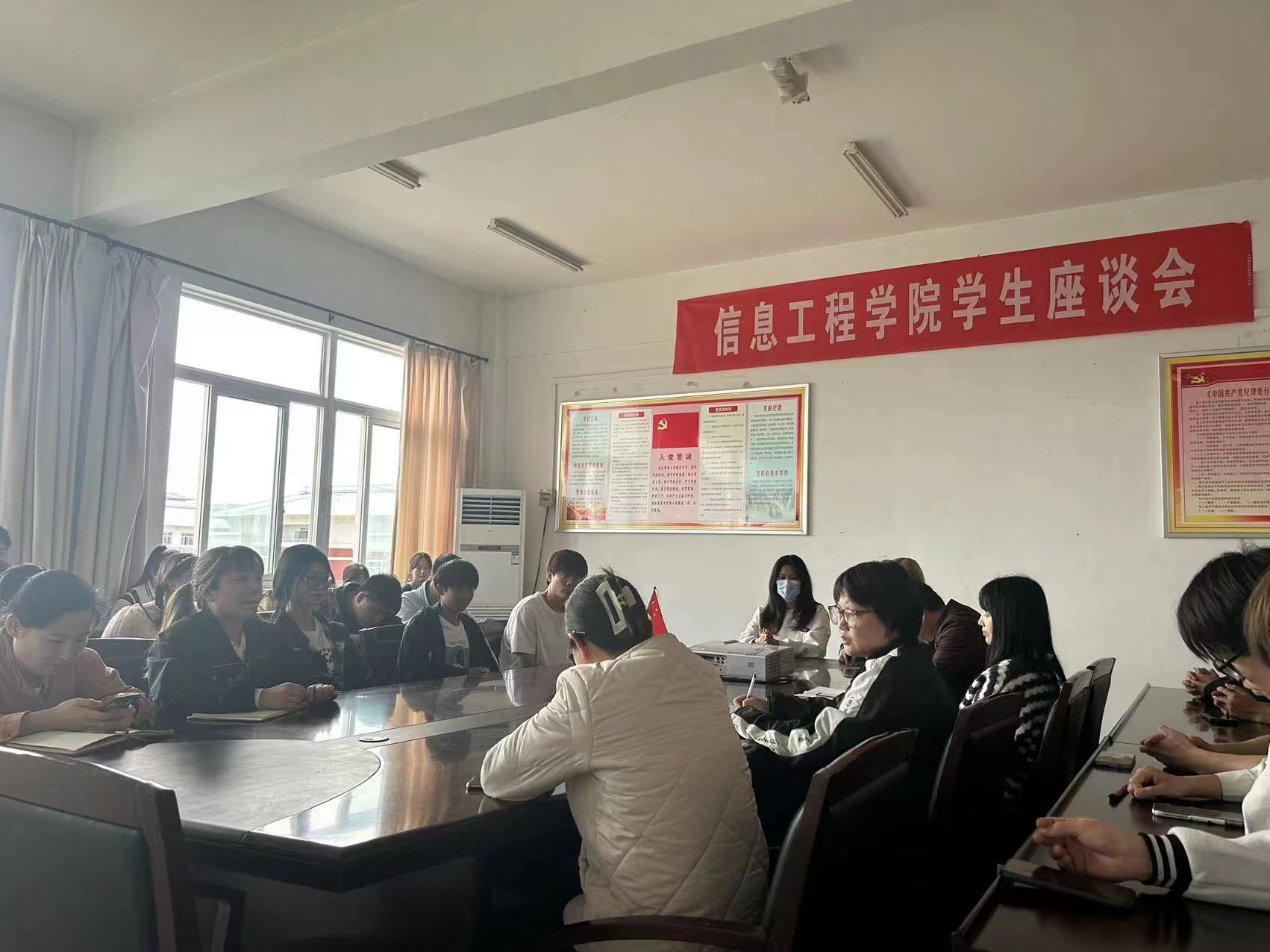 为进一步贯彻落实“以生为本”的发展思路,倾听学生心声,助力学生成长,提升学生的幸福感、获得感和满意度。4月14日,信息工程学院在2513会议室召开学生座谈会。我院学管教师与21、22级班级学生代表亲切交流,畅谈学习生活。