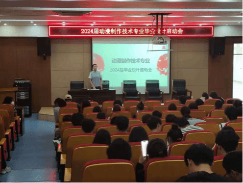 10月18日下午,传媒与设计学院动漫制作技术专业在南阶205报告厅举行2024届毕业生毕业设计启动会,会议由动制作技术专业负责人薛梦琪主持,毕业设计指导老师及2024届动漫制作技术专业学生200余人到场。