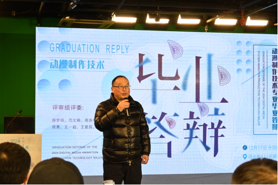 12月17日,传媒与设计学院数字媒体系动漫制作技术专业2024届毕业答辩会在综合楼411创新媒体视觉中心顺利举行。校党委委员、工会主席李平权,传媒与设计学院党总支书记王广保、院长闻建强出席本次答辩会现场。答辩会由动漫制作技术专业负责人薛梦琪主持,动漫专业教师范文娟、王一超、周苏亭、周勇、王星辰、汪国亮、尚彩云担任此次答辩评审工作。