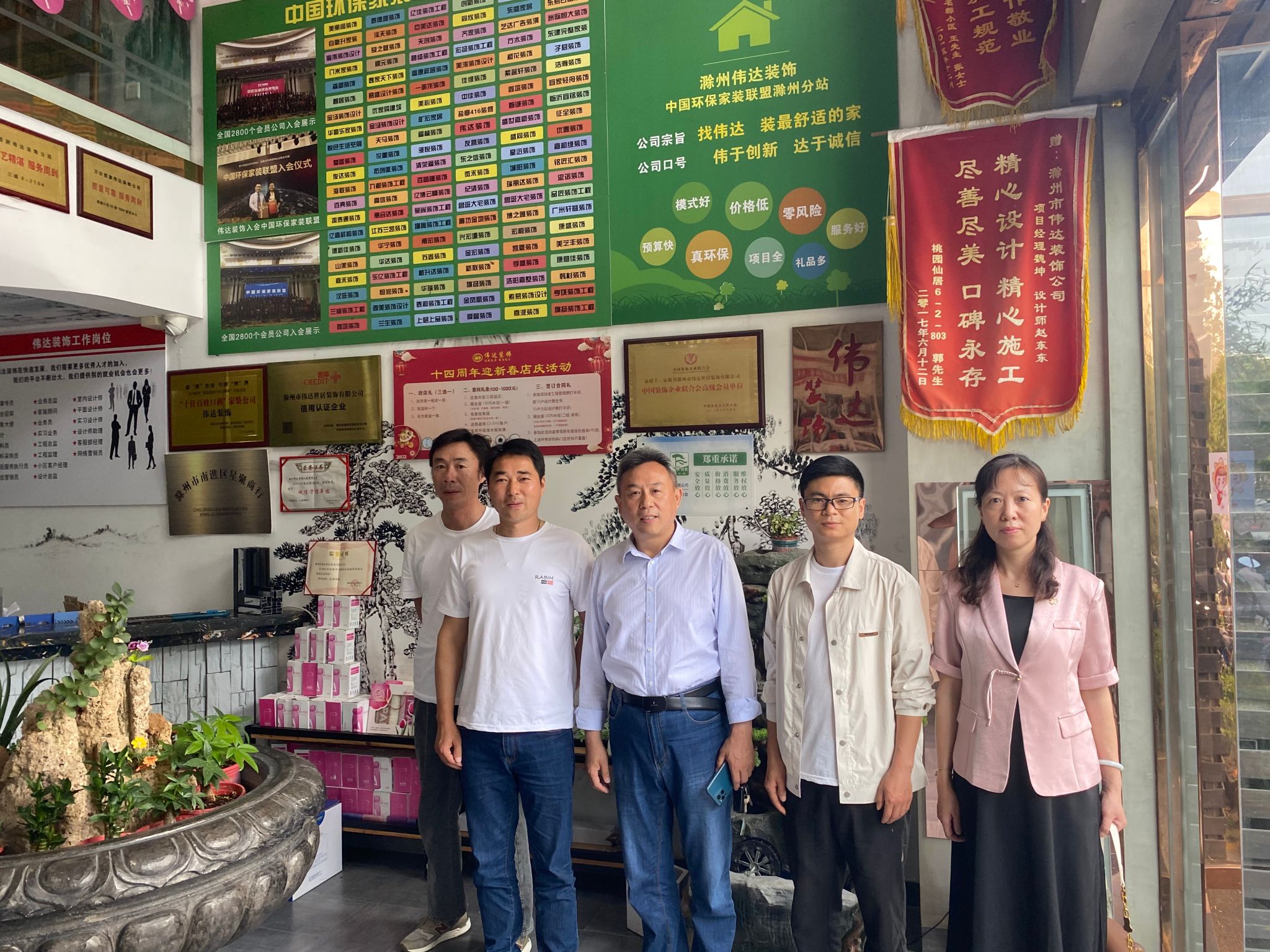 为进一步深化校企合作,助力毕业生高质量就业,5月22日,传媒与设计学院党总支书记王广保、设计艺术系专业负责人王起、毕业班辅导员郭伟一行,赴滁州天工装饰设计、滁州伟达装饰、滁州佳润装饰、安徽久清装饰等多家滁州市装饰协会会员企业走访调研,装饰协会常务副会长武运坤全程陪同走访,实地了解企业岗位需求和毕业生就业情况,扎实开展“访企拓岗”行动。