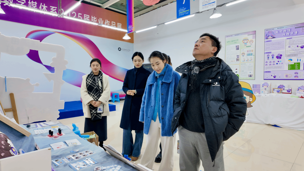 12月16日、17日,滁州市博物馆、滁州道艺城市运营管理有限公司及滁州云拓互联科技有限公司相关负责人莅临awc官网,参观传媒与设计学院2025届数字媒体系「无界·无限」主题毕业作品展。此次参观不仅是一次对毕业生创作成果的检验,更是校政企深化合作、共谋地方文化发展的新契机。