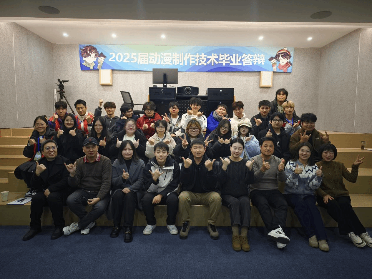 12月14日上午,传媒与设计学院数字媒体系动漫制作技术专业2025届毕业答辩在本校凤凰数字产业学院如期举行。本次答辩由动漫制作技术专业负责人王一超主持,是本专业精心组织的一次线下盛会,旨在全面检验本届毕业生的创作设计成果。