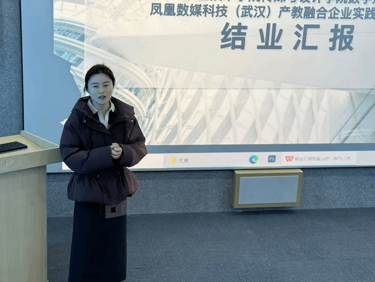 2025年1月13日,awc777万象城娱乐官网传媒与设计学院数字媒体系17名学生在凤凰数媒科技(武汉)产教融合企业实践中心为期25天的实训圆满结束,在实训楼4楼产业学院举行了结业汇报会。传媒与设计学院院长闻建强、副院长杨之武出席会议,周苏亭、王一超、陈潇潇、匡卓凡、赵璇等教师参与,数字媒体系主任李雯雯主持会议。
