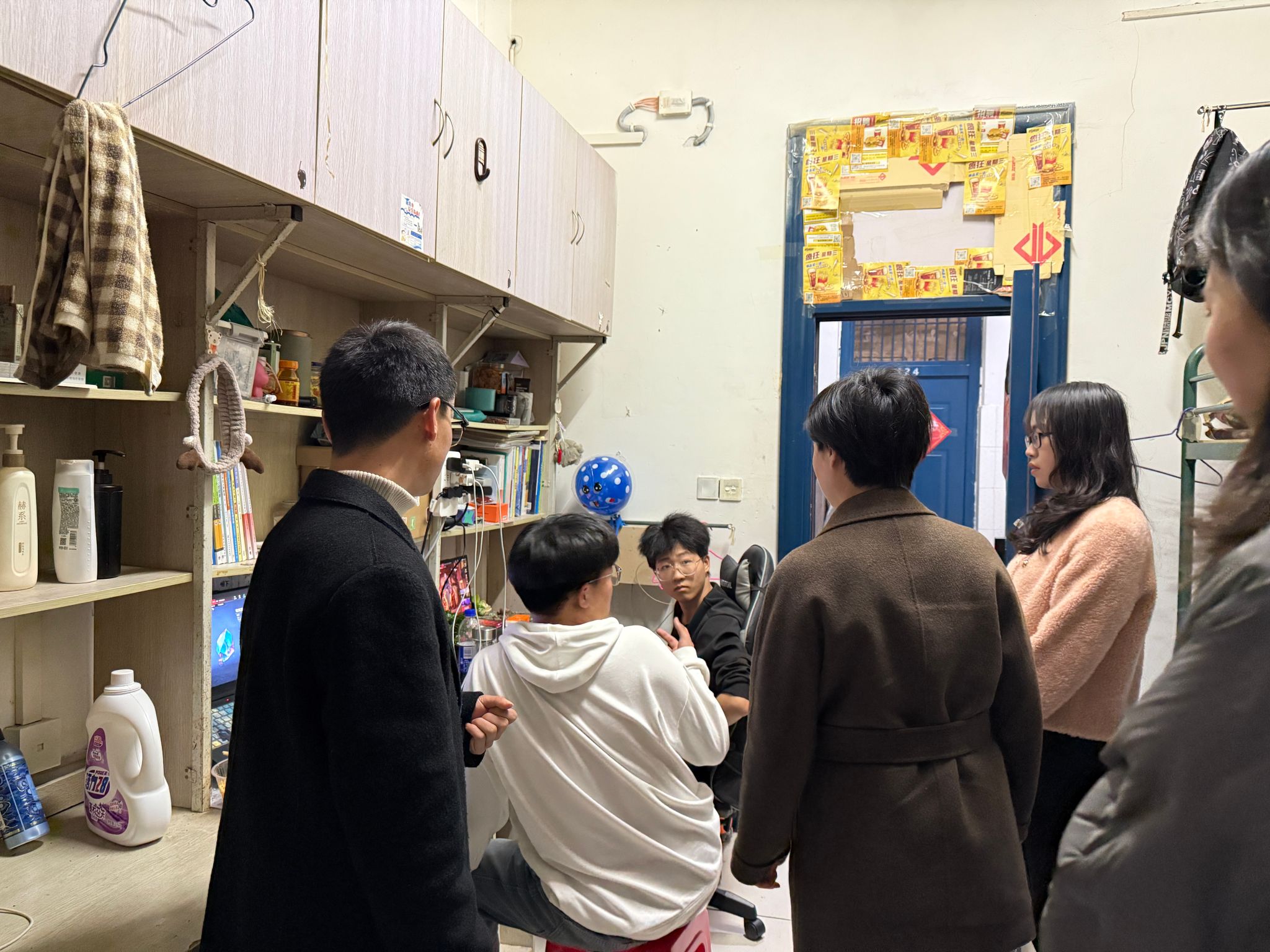 走访过程中,辅导员刘娟、郭伟、瞿康宁、吴涛、汪海燕、匡卓凡、王佳慧等与学生亲切交谈,详细了解学生生活状态、思想动态和学习需求,并鼓励他们积极面对新学期的挑战,努力提升自己的综合素质。此外,辅导员们对宿舍卫生状况以及各类安全隐患进行了全面细致的排查,强调了个人卫生和宿舍安全的重要性,提醒学生们要时刻保持警惕,共同营造整洁、舒适的宿舍环境,提升生活质量和学习效率。