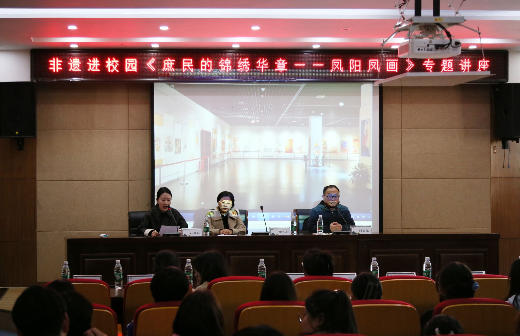 传媒与设计学院院长闻建强出席并致辞。他强调:“凤阳凤画作为安徽特色民间艺术,承载着深厚的文化底蕴。新时代艺术设计人才应立足传统,在传承中创新,让非遗文化焕发时代活力。”闻建强勉励同学们通过本次学习,深化对非遗艺术的理解,探索传统技艺与现代设计的融合路径。