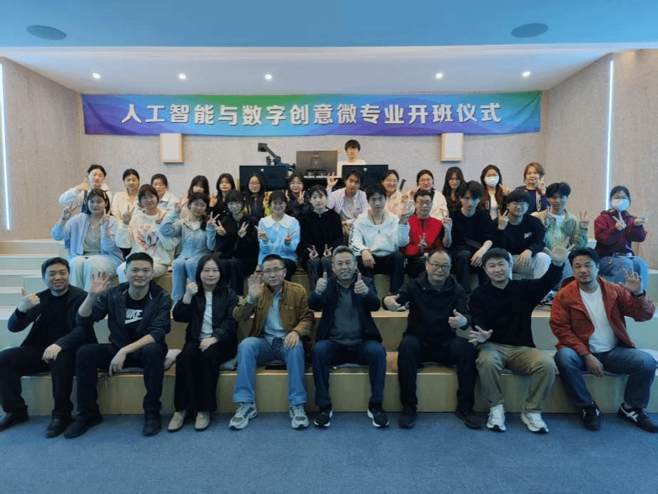 4月12日,传媒与设计学院首届“人工智能与数字创意”微专业开班仪式举行。传媒学院党总支书记王广保、院长闻建强、副院长杨之武、院教学秘书蔡忠弟及微专业的全体师生一同参加。