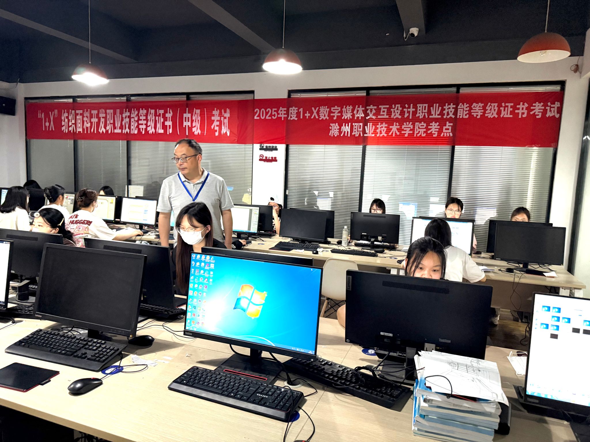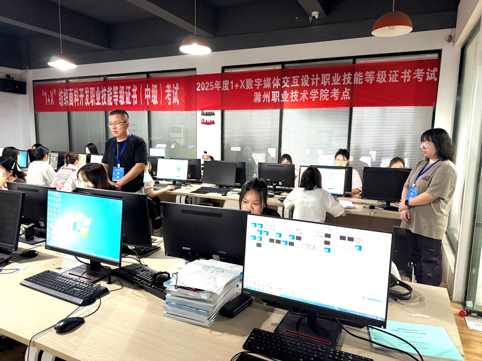 为深化职业教育改革,推进职业教育“1+X”证书制度试点工作,提升学生职业技能水平,6月7日、8日上午,传媒与设计学院数字媒体系顺利组织2023级、2024级传播与策划、动画制作技术两个专业共100名学生参加全国1+X数字媒体交互设计职业技能等级证书(中级)考试。