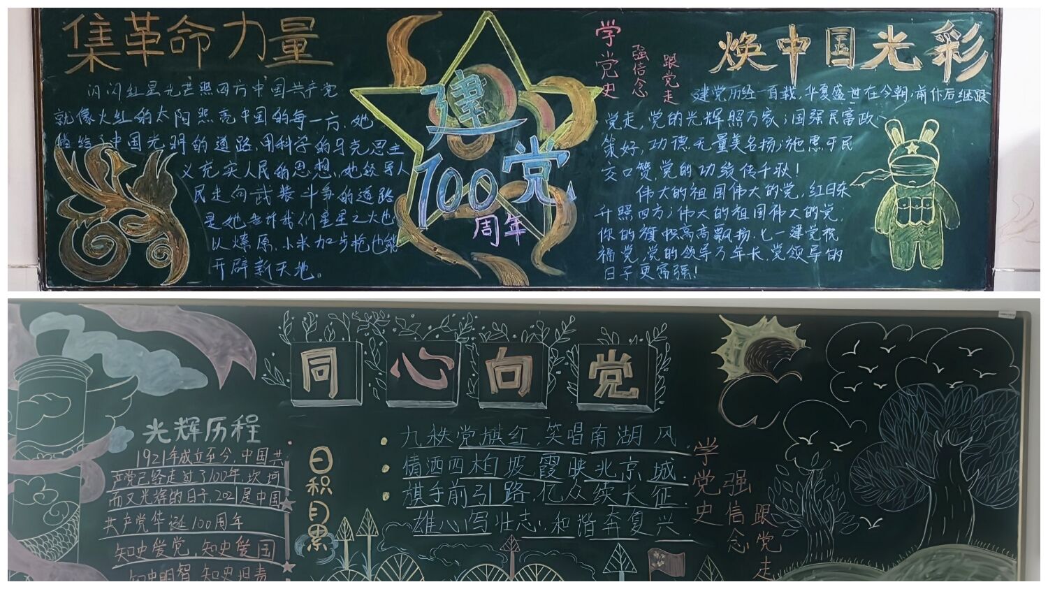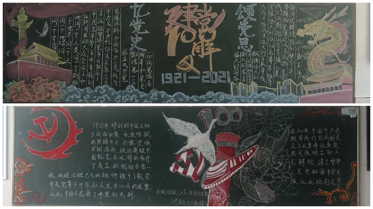 在五四青年节到来之际,为庆祝中国共产党建党100周年,大力营造党史学习教育浓厚氛围。传媒与设计学院结合实际,于4月29日至5月9日组织开展“学党史强信念跟党走”黑板报评比主题团日活动。各班班长组织同学们积极参加。