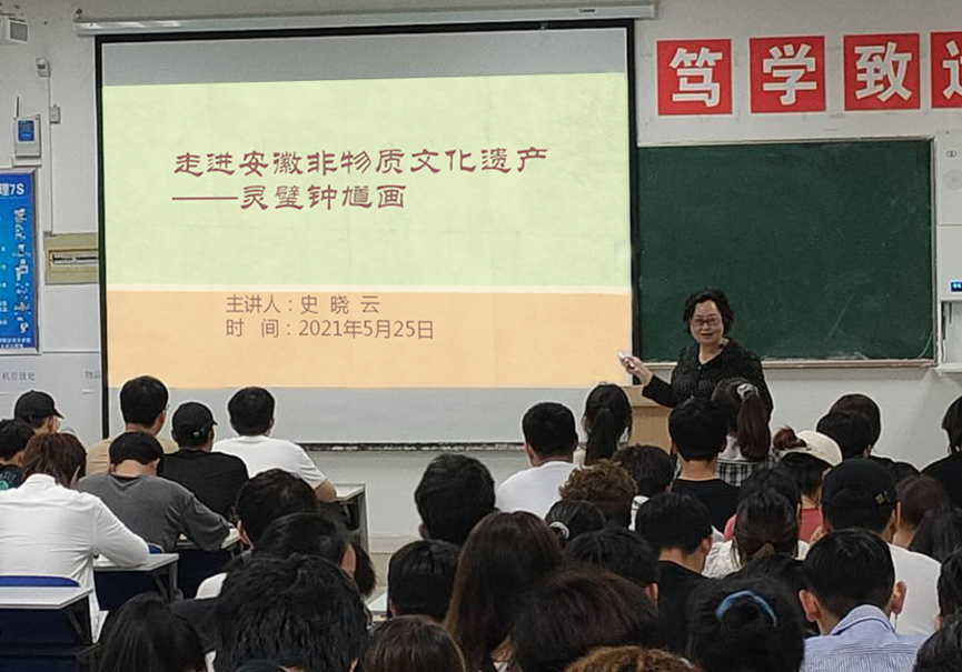 为了增强大学生对地方非物质文化遗产的认知,一场题为“走进安徽非物质文化遗产——灵璧钟馗画”的讲座于2021年5月25日晚在传媒与设计学院4119教室举办,本次讲座由史晓云副教授主讲,室内设计、广告设计班全体学生聆听了讲座。
