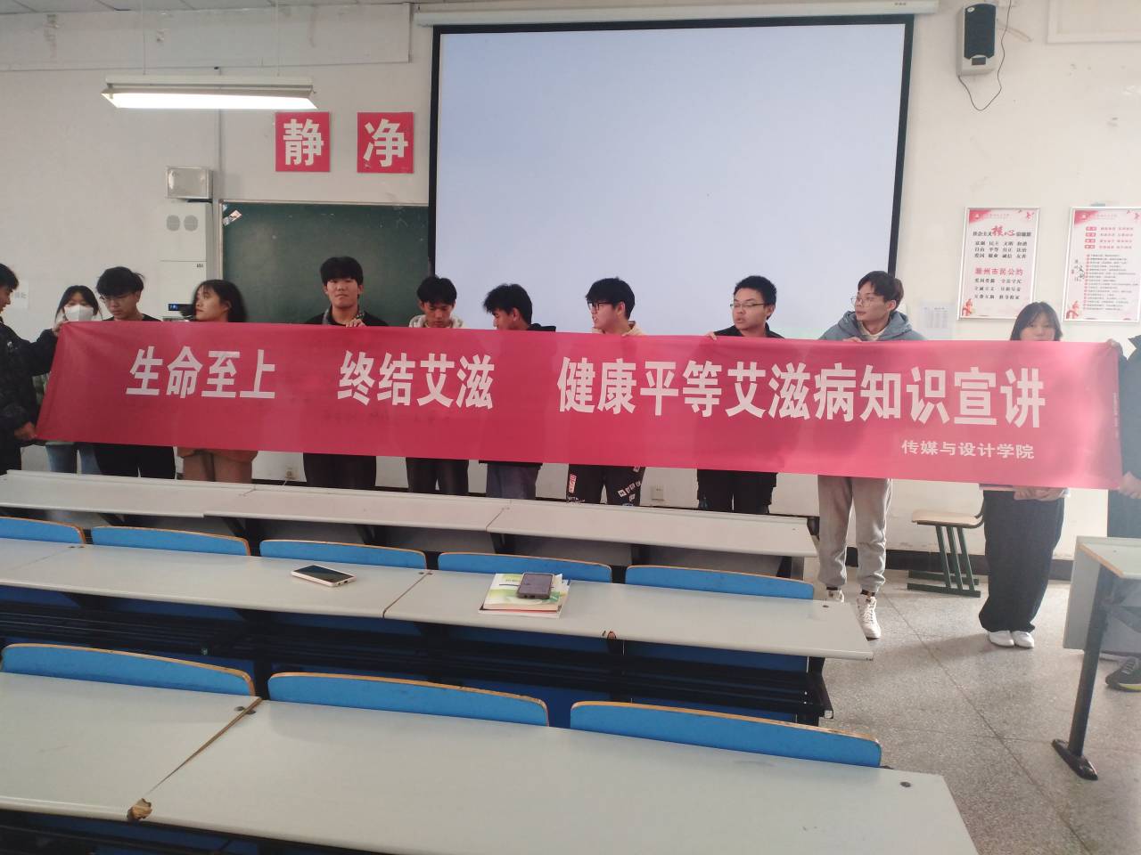 为贯彻执行上级相关文件精神,提高师生自我防病意识、能力以及健康素养水平。11月30日中午,传媒与设计学院团学组织在北阶102教室组织开展了“生命至上 终结艾滋 健康平等”知识宣讲活动,宣讲由团学组织主席王恩茂主持,各班级代表参加。