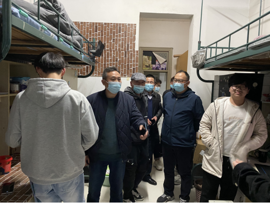走访过程中,王广保一行人和学生亲切交流,询问同学们在学习及生活上遇到的困难,叮嘱学生们在特殊时期要提高疫情防控意识,严格遵守学校疫情防控相关要求,做好每日宿舍开窗通风、卫生清洁工作,加强体育锻炼,提高身体素质。同时询问同学们的心理和生活状况,开展疫情防控期间宿舍防疫工作检查和防疫知识宣传,进行必要的心理疏导。