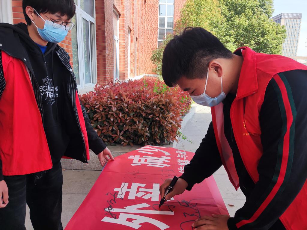 外卖和网购作为部分师生生活中的重要选择。但在疫情当下,这些选择却为学校疫情防控工作带来严重挑战。外卖餐食制作及派送过程中存在沾染病毒的可能,取外卖和快递过程中也存在感染病毒的风险。因此,拒绝外卖进入校园,减少快递流动是学校疫情防控工作的必要举措。活动现场,志愿者向同学们宣传外卖与网购所带来的风险,呼吁同学们减少网购和外卖,提高防护意识,减少恐慌心理。同学们主动在活动条幅上签下自己的姓名,并做出减外卖少网购的承诺。