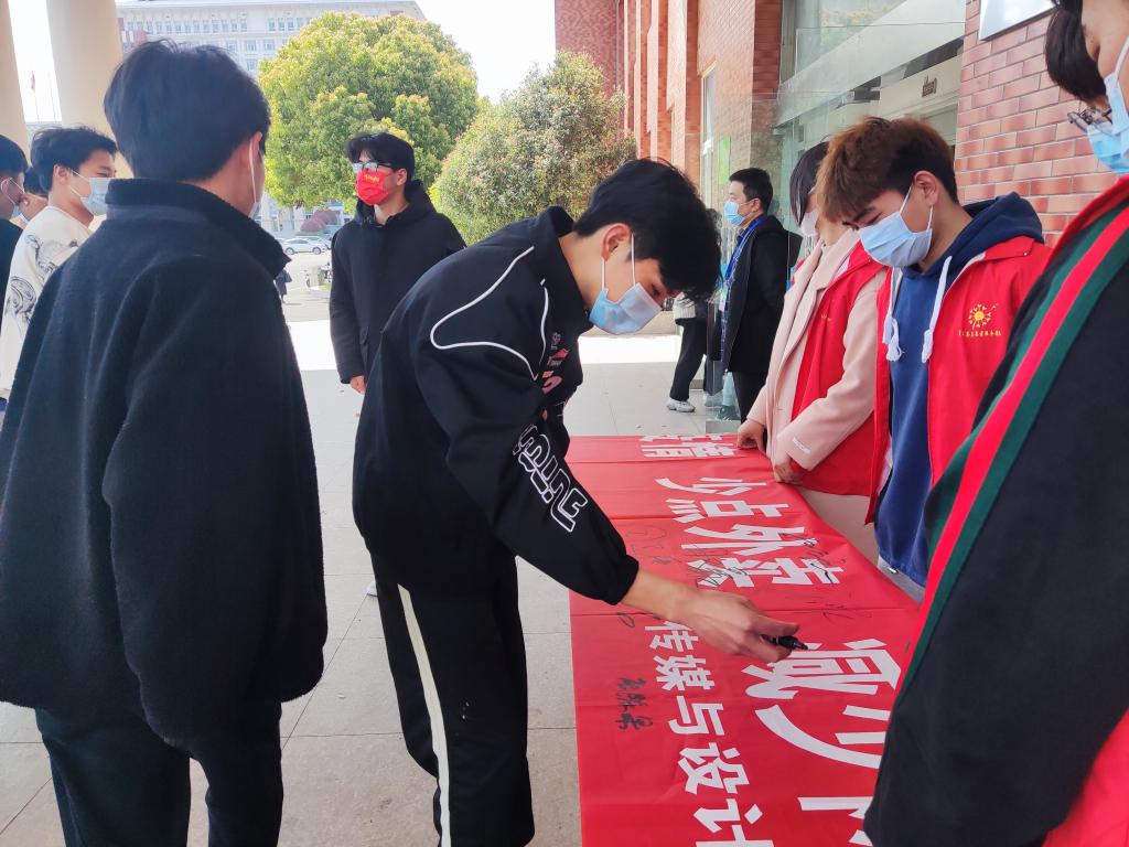 在疫情防控的特殊时期,减外卖、少网购是学校疫情防控工作的必要措施。为阻断疫情传播链条,确保awc官网师生的身体健康和生命安全,筑牢疫情防控坚固防线,传媒与设计学院团总支于3月31日组织开展“减外卖少网购,共携手防输入”主题倡议签名活动。