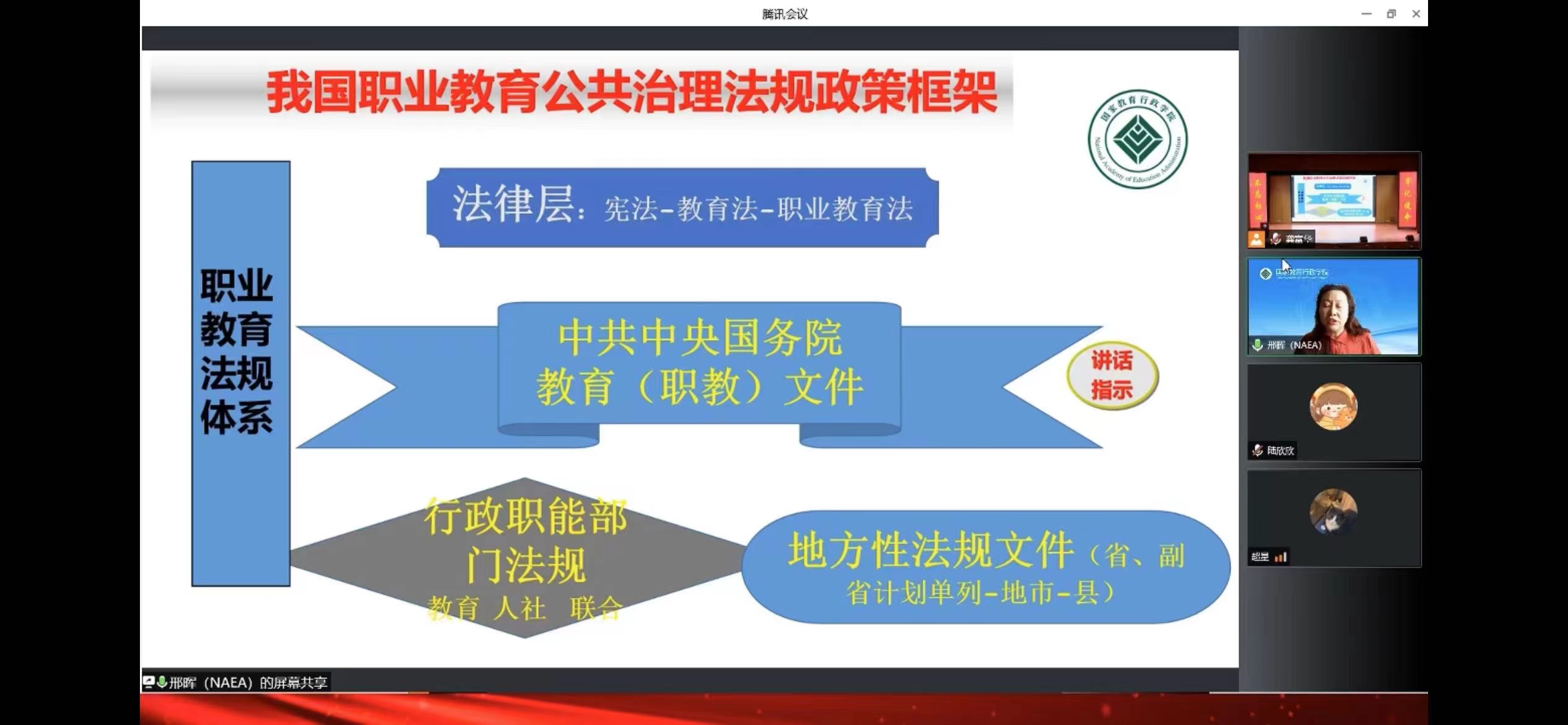 报告中,邢晖研究员深入分析了《中华人民共和国职业教育法》修订的历程和背景,重点阐述了《中华人民共和国职业教育法》修订的时代意义、特色和创新之处。