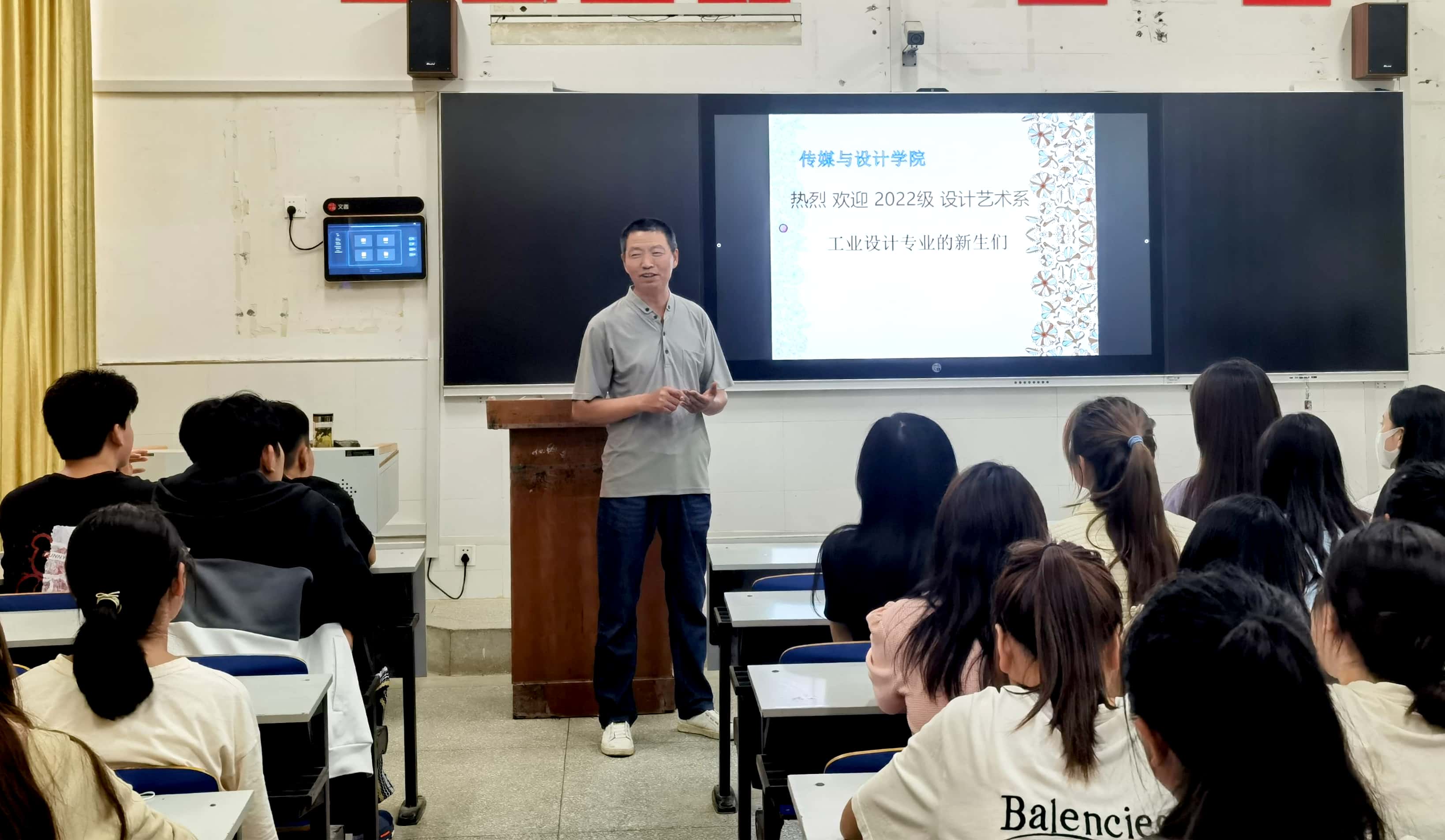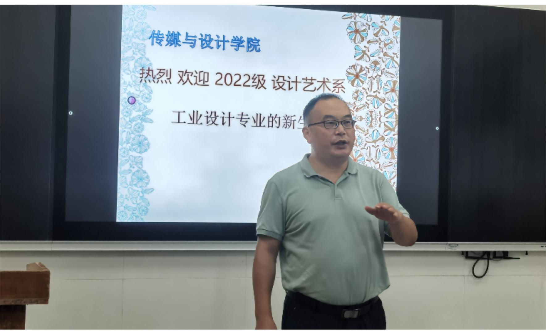 2022年9月28日下午,传媒与设计学院组织2022级工业设计专业开展入学教育,院长闻建强、工业设计专业负责人王起、专业教师闫正洲等参加会议。
