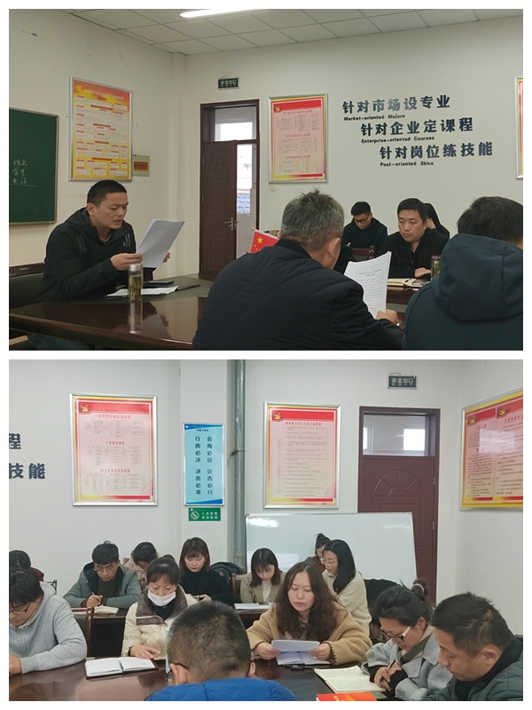 会议伊始,学院教学秘书蔡忠弟领学“教育部等八部门关于印发《职业学校学生实习管理规定》的通知”,通知中强调,一是准确把握实习本质,二是严守实习基本规范和底线红线,三是落实实习管理协同机制,四是强化实习监管和问责。