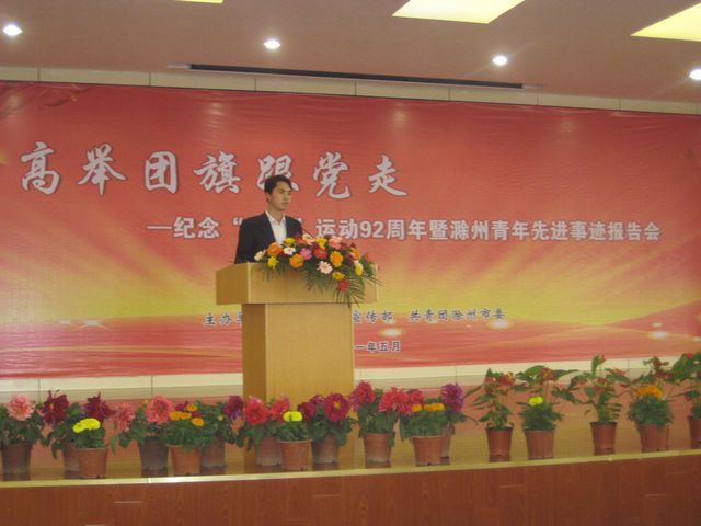为隆重纪念“五四”运动92周年,5月4日下午,滁州市委宣传部、共青团滁州市委在滁州中学新校区大礼堂联合举办了“纪念‘五四’运动92周年暨滁州青年先进事迹报告会”。基础部团总支组织了50名团员青年代表亲临现场聆听了此次报告。