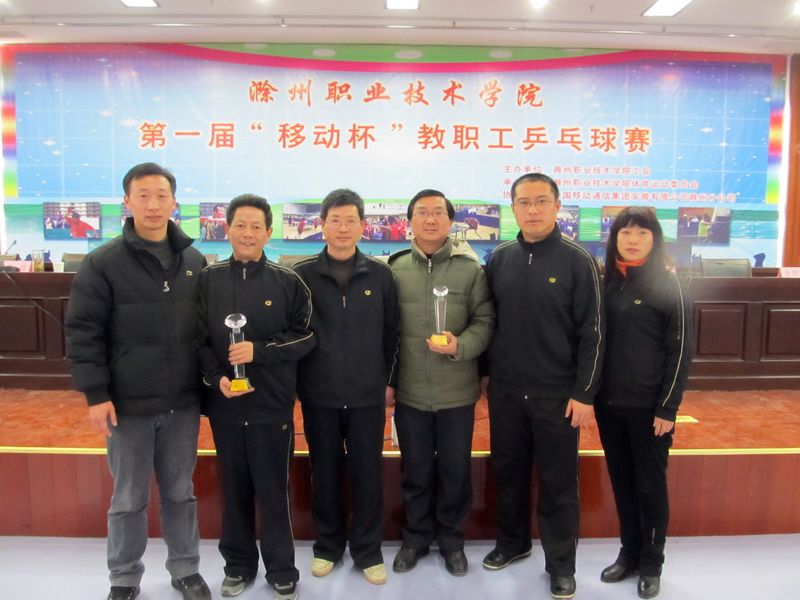 2012年1月8日,awc777万象城娱乐官网首届“移动杯”教职工乒乓球比赛在综合楼五楼隆重开幕,基础部代表队在领队——系党总支李超书记的带领下,参加了个人与团体两个项目的角逐。经过小组赛和淘汰赛的激烈竞争,最终基础部代表队在11支参赛队中取得第七名的好成绩;张广龙老师不负众望,在男子单打中独占鳌头,荣获冠军。