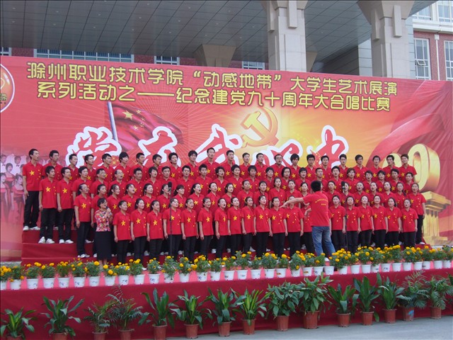 基础部合唱队由82名大一学生和8名党员教师组成,共90人,象征着中国共产党走过的90年光辉岁月。合唱队由系党总支书记、系主任王冬同志亲自挂帅,思政教学部所有教师积极参加,思政教学部李爱红副主任担任领唱,基础部师生要用自己的歌声讴歌中国革命的伟大事业和中国共产党的丰功伟绩,他们在繁忙的学习和工作之余,始终以积极、饱满的热情投身训练,展现了全体师生团结进取的精神风貌和为建党90周年献礼的崇高热情。