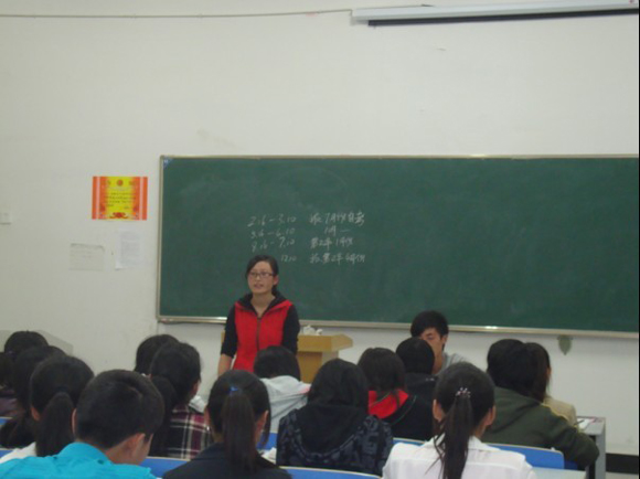2010年10月20日晚七点半,08、09级优秀学生代表走进了大一各班级。大一新生积极踊跃的问了各个方面的问题,老生都一一详细的给予解答并传授自己的一些学习经验。经过近一个半小时的交流同学们对自己所学的和以后该做的有了进一步认识。