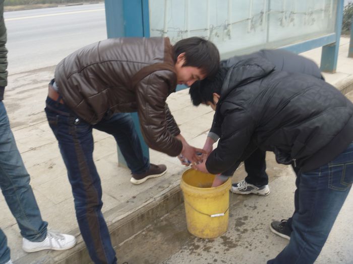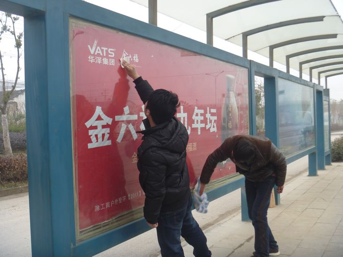 2012年2月26日,基础部11化工班的青年志愿者们在系团总支的带领下来到腰铺北大街,开始了本学期我系团员青年的首次“清洁市容”志愿者服务活动,虽然天气阴冷,但志愿者们依然冒着寒风认真的清理公交站台。