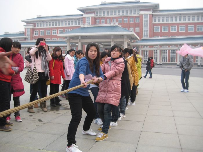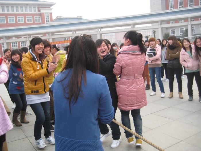 开幕式结束后,本届女生节的第一项集体活动—女生拔河比赛在国旗广场开始了,我系两位女辅导员也闻讯赶来,现场气氛异常活跃,辅导员的到来、拉拉队的助威鼓舞了队员们的士气,最终基础部三战三捷、一一击败对手,荣获本次拔河比赛冠军。