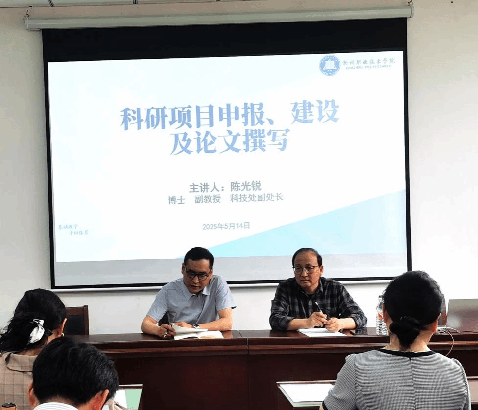 为深入落实《基础教学部2025年教师培训方案》,5月14日下午,基础教学部在综合楼318室举办“专家引领促提升 深耕科研助前行”专题培训讲座。活动聚焦教师科研能力与教学项目申报双提升,特邀校科技处副处长陈光锐、教务处副处长赵卫东担任主讲嘉宾。基础教学部党政负责人及全体教师参加,讲座由刘杰主持。
