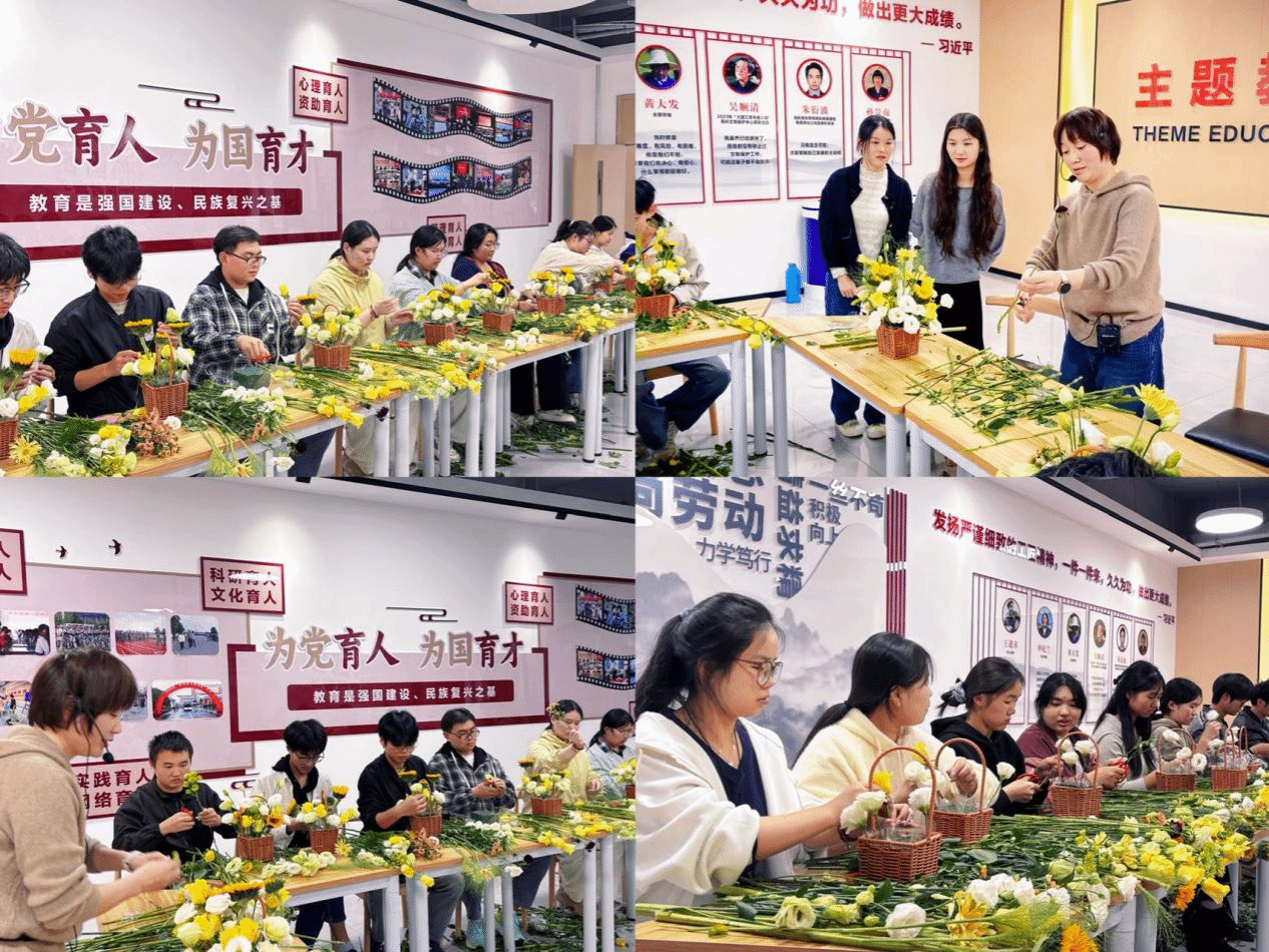 活动伊始,劳动教育教研室负责人刘双为在场同学阐述了重阳节深厚的文化底蕴。她指出,重阳节承载着中华民族尊老敬老、祈福安康的传统美德,其文化内核与新时代倡导的劳动育人、美德传承高度契合。本次插花活动不仅是一次手工技能的锻炼,更是一堂融合传统文化与劳动教育的沉浸式思政课,生动诠释了“以劳树德、以劳育美”的育人理念。