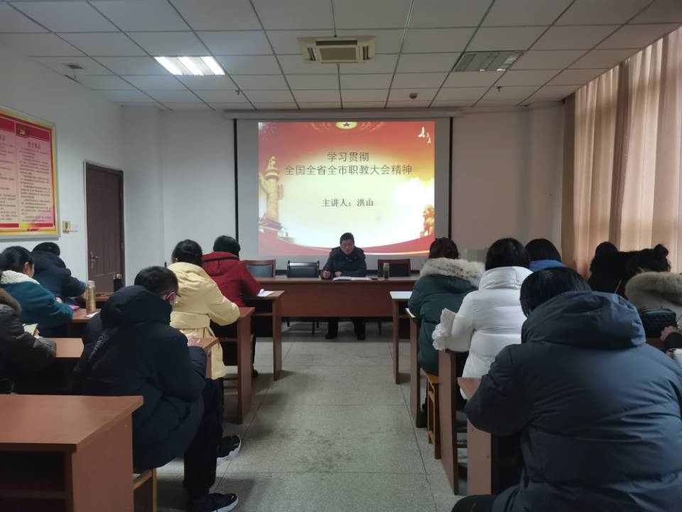 为学习领会全国职业教育大会精神,准确把握职业教育发展方向,基础教学部贯彻落实学校教师全员培训部署的要求,于2022年1月10日下午组织全体教师学习研讨全国、省、市职业教育大会精神。